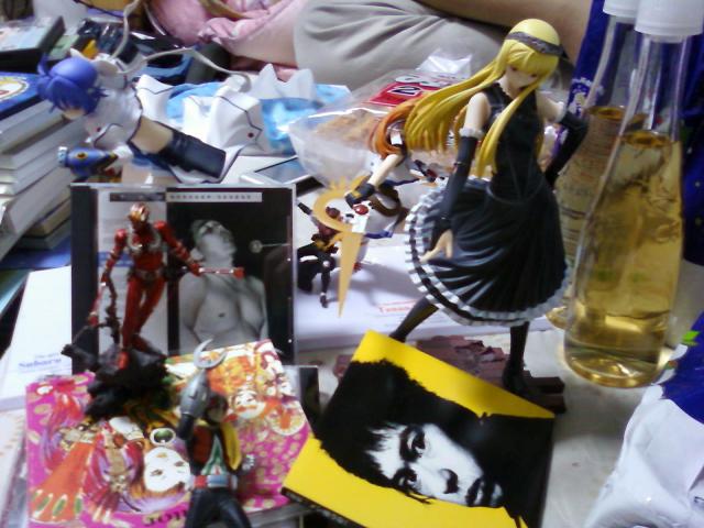 いよいよ明日からコミケですねえ。私は一般参加です。 まあ牛鬼んとこはサークル参加するようなので、こちらでも宣伝の一つもしておきますw タイトルは『ヴォルケンチック・ナゴム・ビート』。シャマル×シグナムの百合ギャグらしいですが、私はなのはさっぱりですので詳しくは御嬢と魔獣のサイトの方を見といてください。……夏コミのときは見るつもりだったんだけどなあ、なのは。 そして私はそんな牛鬼さんに同行して三日間の御泊りなのです。同室。あらやだ。 という訳で少なくとも三日は更新無い事確定ですのでそこのところはご容赦ください。……東横インって部屋には回線繋がってないよな。 ★ クリスマスイヴの夜、皆様はいかがお過ごしでしたでしょうか。一人の夜、良いじゃないですか。家族、素晴らしい。恋人? 勝手にしてなさい、ふんっ! ……私はその時、牛鬼と過ごしていました。 私は日付が25日に変わる頃に家を出、24時間営業のスーパーでシャンメリーを買いました。5本ほど。その足で牛鬼の職場へ。そして二人して牛鬼宅へ。もうね、この時点でなにか常軌を逸していました。 当初の予定では私がシャンメリーを買う代わりに、牛鬼はチキンを買う予定の筈でしたが、牛鬼の用意したものはお徳用のチキンラーメンでした。チキンは高かったらしい。知らねえよ。 そんなわけで、クリスマスパーティは牛鬼宅でもっそりと開始いたしました。 右に小さくベビースターどでかいラーメンが見えます。完全にチキンラーメンと被りました。あとこんなにぞんざいなシャンメリーも初めて見ました。ちなみに上の気持ち悪い足は牛鬼の。下の気持ち悪い足は僕のです。 もさもさしてます。もさもさしてます。そんなもさもさした二人を華やがせるキャスト達もいらっしゃいます。 怪物王女より、姫様と、なのはと、あとなんか青い人とライダーマンとなんか知らん仮面ライダーと……。 フィギュア勢はやる気満々ですがCD勢も負けておりません。 ライダーマンがよっかかってるのは大槻ケンヂのバンド『特撮』より、『Agitator』。黄色いバックのは『INU』より 『メシ食うな!』。写真の方は私の敬愛するパンク神、町田町蔵様です。そしてなんか青い人に立てかけてあるのは、『THE GEROGERIGEGEGE』より、『LIVE GREATEST HITS』。ノイズといえばこのバンドあり、写真の方は見事に楽器を勤め上げるサラリーマン、ゲロ30さんです。このアルバムはライブで彼がオナニーする声を包み隠さず収録しております。 そんな感じで寒い寒いとシャンメリーを煽りつつ、チキンラーメンをそのまま齧りつつ、大きな盛り上がりも無いままサバトは終わりました。 ……なにこれ? なんか、あんまりにもあんまりなので、もうちょっと続きます。 終わったら朝食代わりにと残りのチキンラーメンを煮て食べました。 残り=12個。 地獄が出来た。 この腹立つながらも人をイラつかせる才能に満ち満ち、それでいてストレスフルなピースサインは牛鬼の物です。チキンラーメンってこういう盛り付けでしたっけ。 ね……? まあ……うん。クリスマスだもん、浮かれるよ。 …… ………… サークル『御嬢と魔獣』、三日目、スペース番号『西‐つ‐06』、私からもよろしくお願いします!